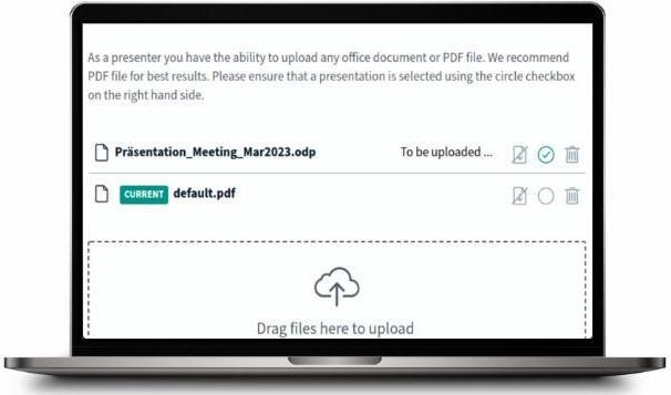 Upload or switch your presentation quick and easy via "drag and drop", even during the current online-meeting, and react directly on upcoming questions or issues, for example during trainings or web-conferences with customers!
