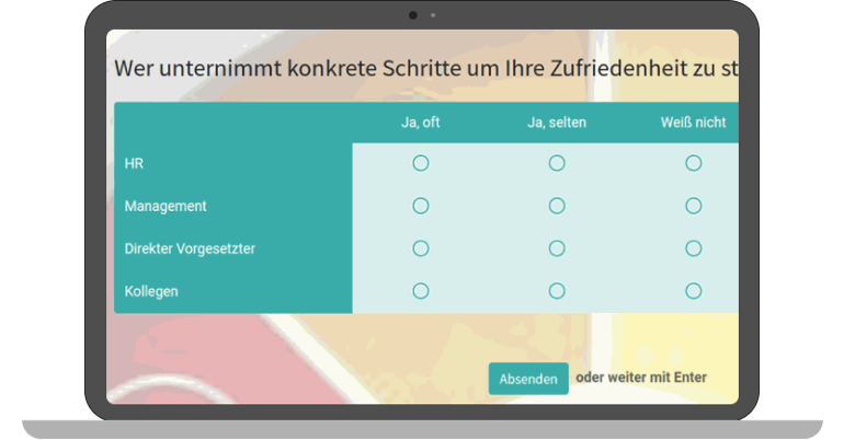 With ITISeasy.business, conducting and creating surveys is no problem. Various question and answer options provide you with the optimal opportunity to identify opinions within your company.