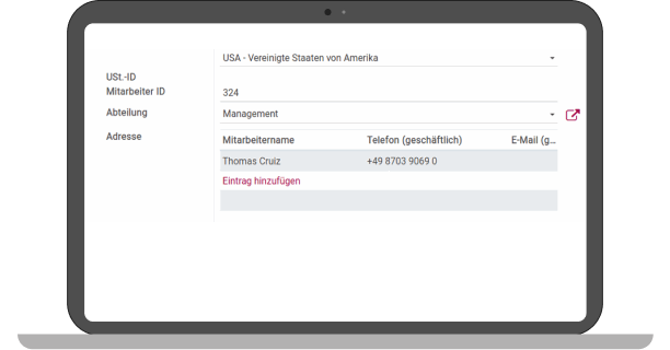 The address (One) and the associated values such as employee name and telephone (Many) are displayed in a table and can be filled. This table and its columns can also be modified in the Builder module.